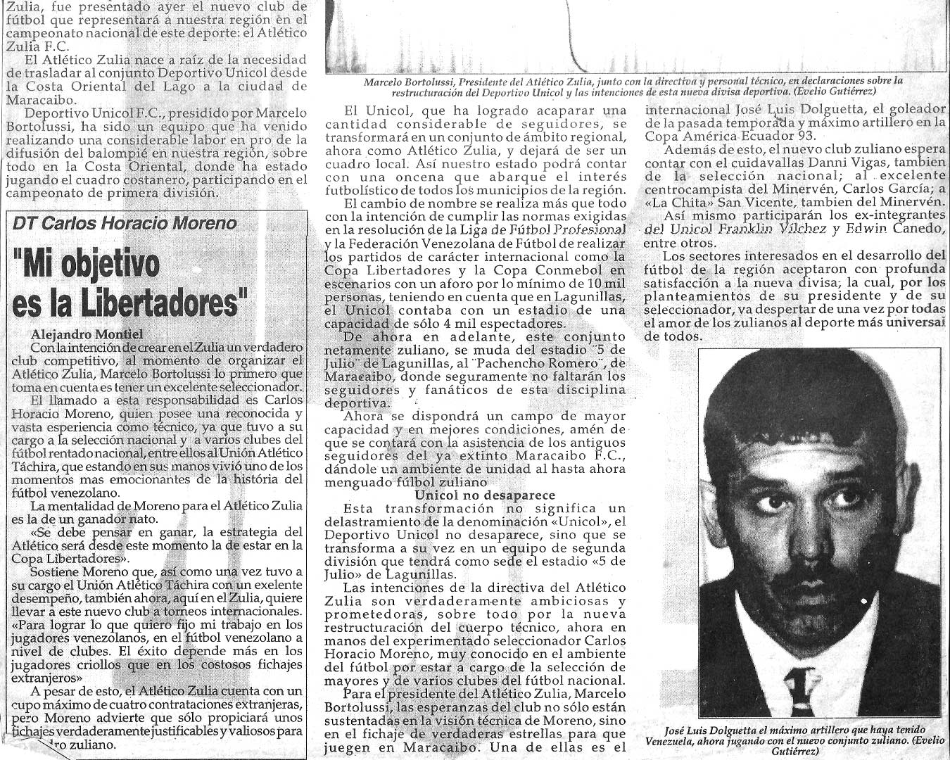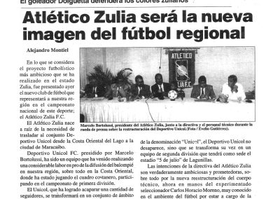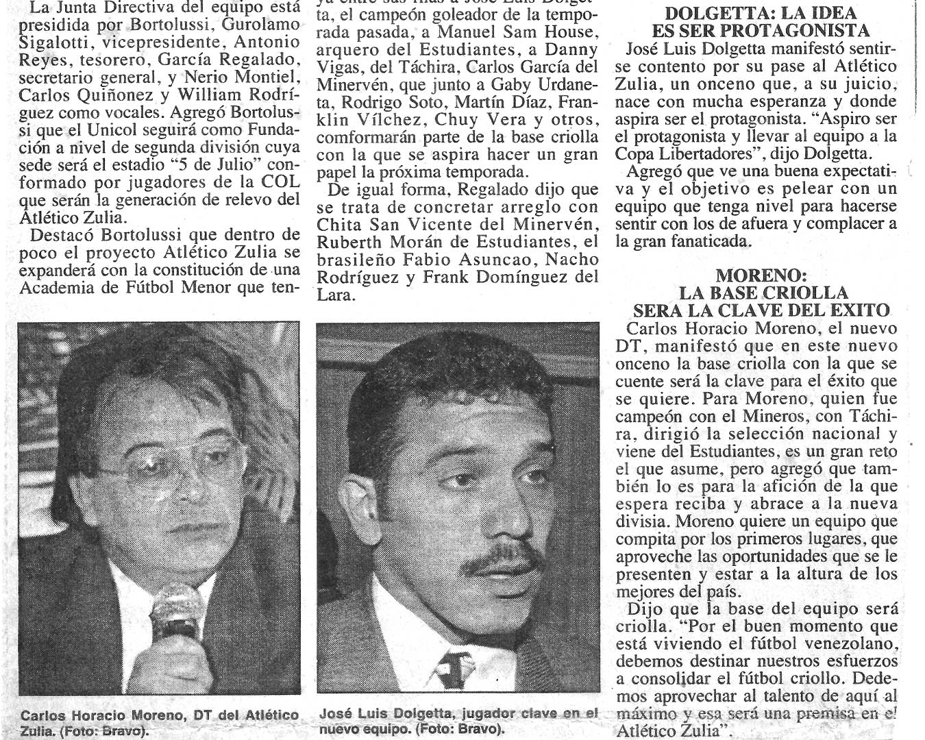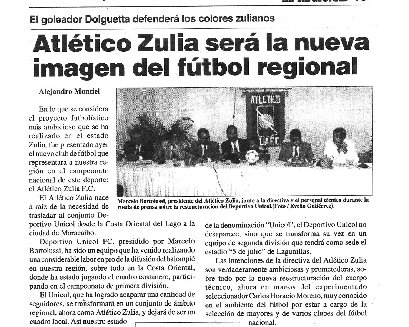 Atlético Zulia sería la nueva imagen del fútbol zuliano, con una directiva solvente, con ideas gerenciales serias y con un proyecto futbolístico ambicioso tal como fue anunciado en una rueda de prensa que sacudió el ambiente deportivo zuliano realizada en el fastuoso Hotel Maruma de Maracaibo con la presencia masiva del periodismo radial, escrito y televisivo de la ciudad.